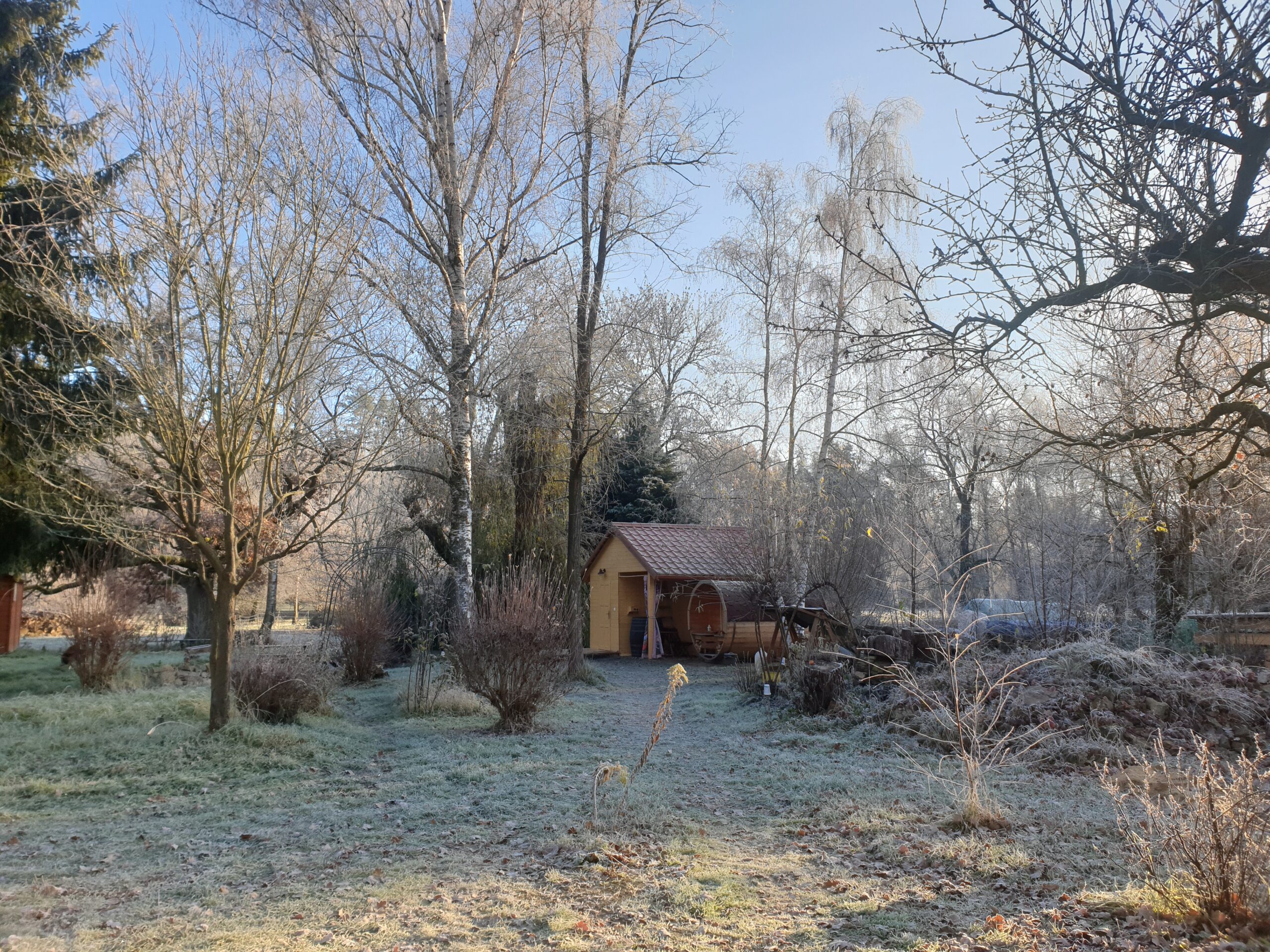 Máme pro vás připravenu dřevěnou sudovou saunu, vytápěné zázemí s lázeňskými kamny, sprchou, posezením, sklápěcím vědrem, zchlazovacím sudem, venkovní WC a zahradu s lavičkami osvětlenou loučemi a lucernami. Nezapomínáme ani na doplňování tekutin (voda, minerální voda, bylinkový čaj).